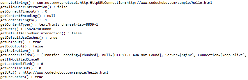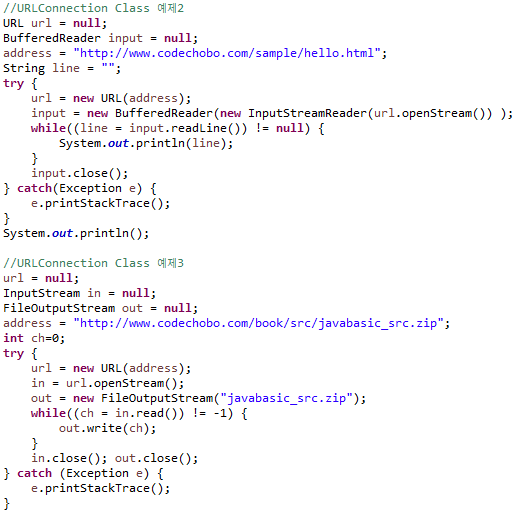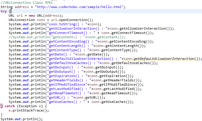 - URLConnection클래스와 관련된 예제와 출력결과물이다.