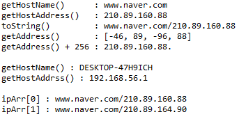 - getLocalHost() : 호스트명과 IP주소를 알 수 있다.