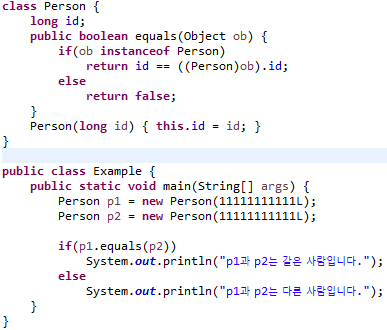 ** Person클래스에서 equals()를 오버라이딩해서 사용했다.