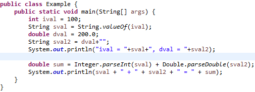 ** 기본형->문자열, 문자열->기본형으로 변환하는 예제이다.