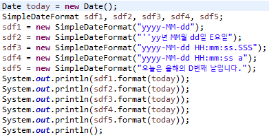 -SimpleDateFormat클래스 : 날짜 데이터를 원하는 형태로 출력하는데 사용된다.