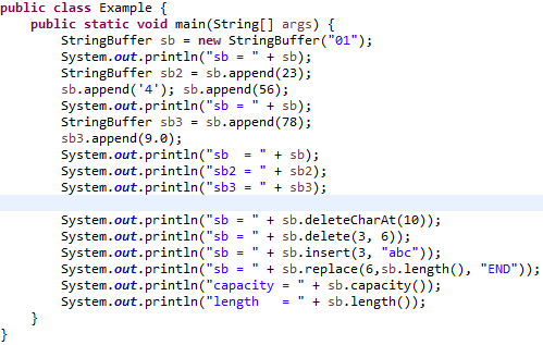 ** StringBuffer의 생성자와 메서드를 이용한 예제이다.