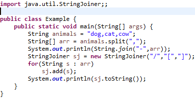 - StringJoiner클래스를 사용해서 결합할 수도 있다.