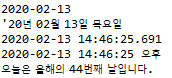 ** 2020년 2월 13일(오늘)을 기준으로 출력이 되었다.