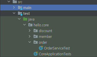 test 폴더 밑에 order 패키지를 만들고 그 안에 OrderServiceTest 클래스를 만듭니다.