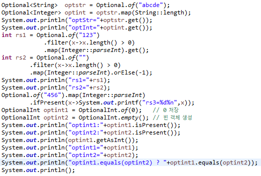 -Optional<T> : T타입의 객체를 감싸는 래퍼클래스